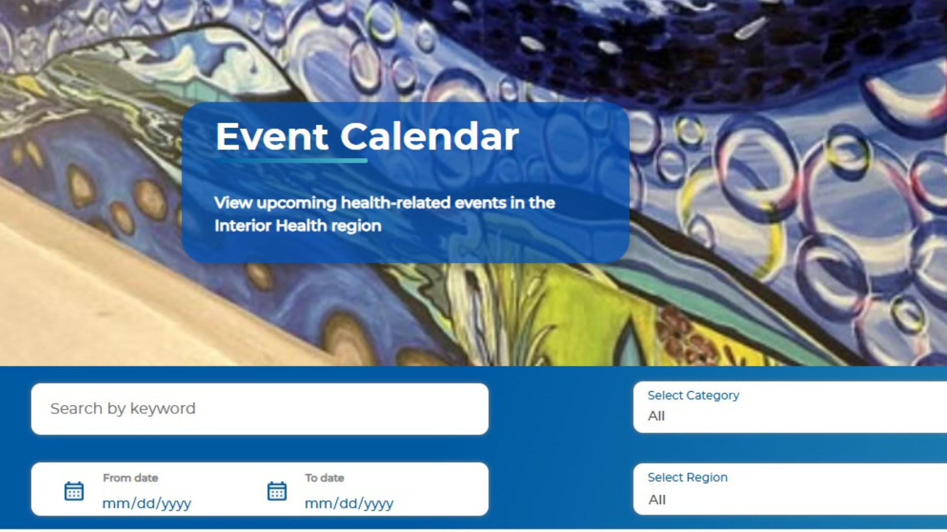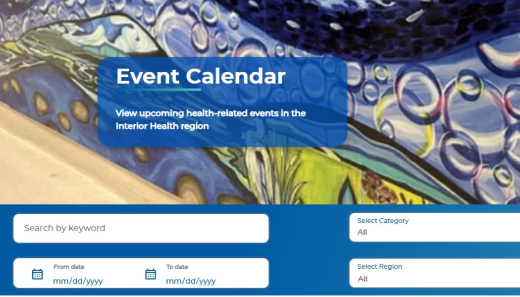 We have launched a new event calendar on our website at https://www.interiorhealth.ca/event-calendar. Check out the calendar to view health-related events happening throughout the Interior region, from the Thompson Cariboo Shuswap to the East Kootenay, and everywhere in between.