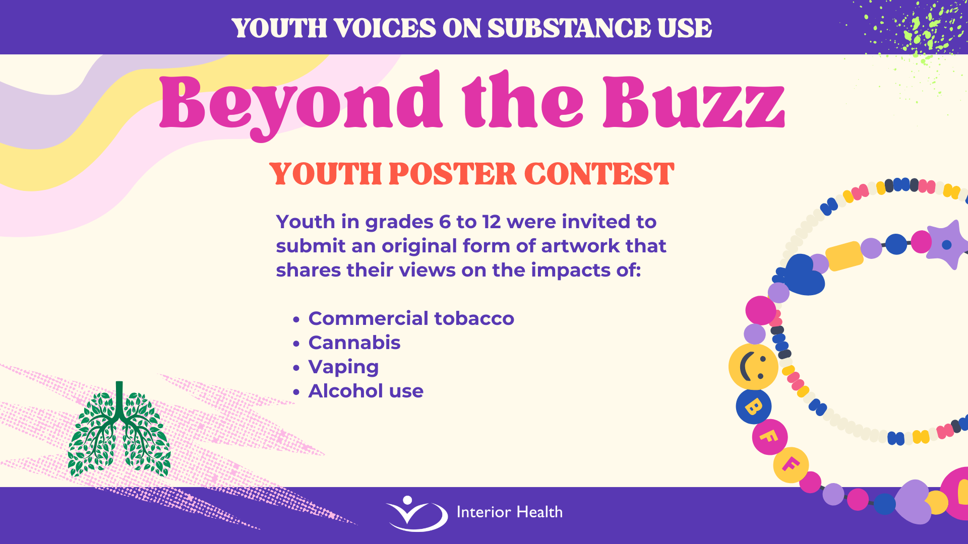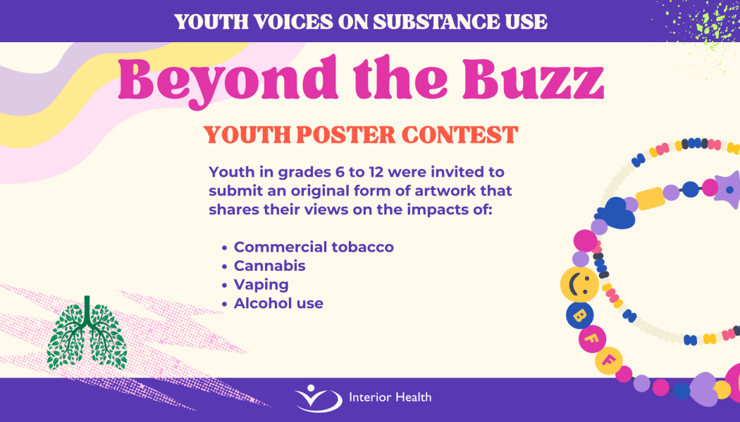 Youth in Grades 6 to 12 living in the Interior Health region were invited to participate in the contest. Teen judges from the Interior Health YOUTHWISE Advisory Group evaluated and scored each poster based on a specific set of criteria in each theme category.