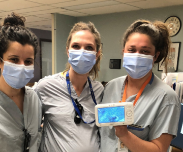 And her decision has brought joy to the hearts of labour and delivery staff, who are keeping close watch via a baby monitor at the nursing station. Pictured above from left to right, labour and delivery nurses Talia Ollek, Janelle Manderson and Monica Manderson showcase the monitor.