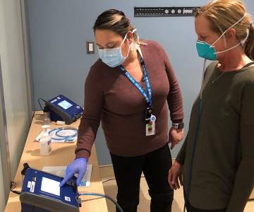Quantitative fit testing is the most accurate form of a fitting. It’s a data driven approach to determine the fit of a respirator on an individual’s face. Specialized equipment measures the amount of leakage around the seal. Amanda and her colleagues also explain how to put on, remove, and properly wear a respirator. This is critical to keeping health-care workers safe.